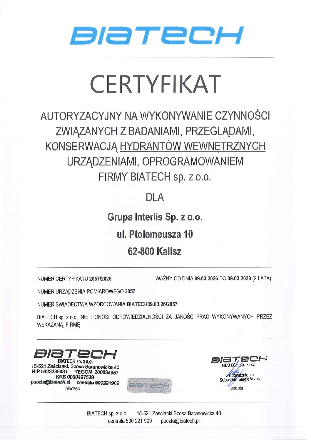 POSIADAMY AUTORYZOWANY CERTYFIKAT OGNIOCHRON S.A